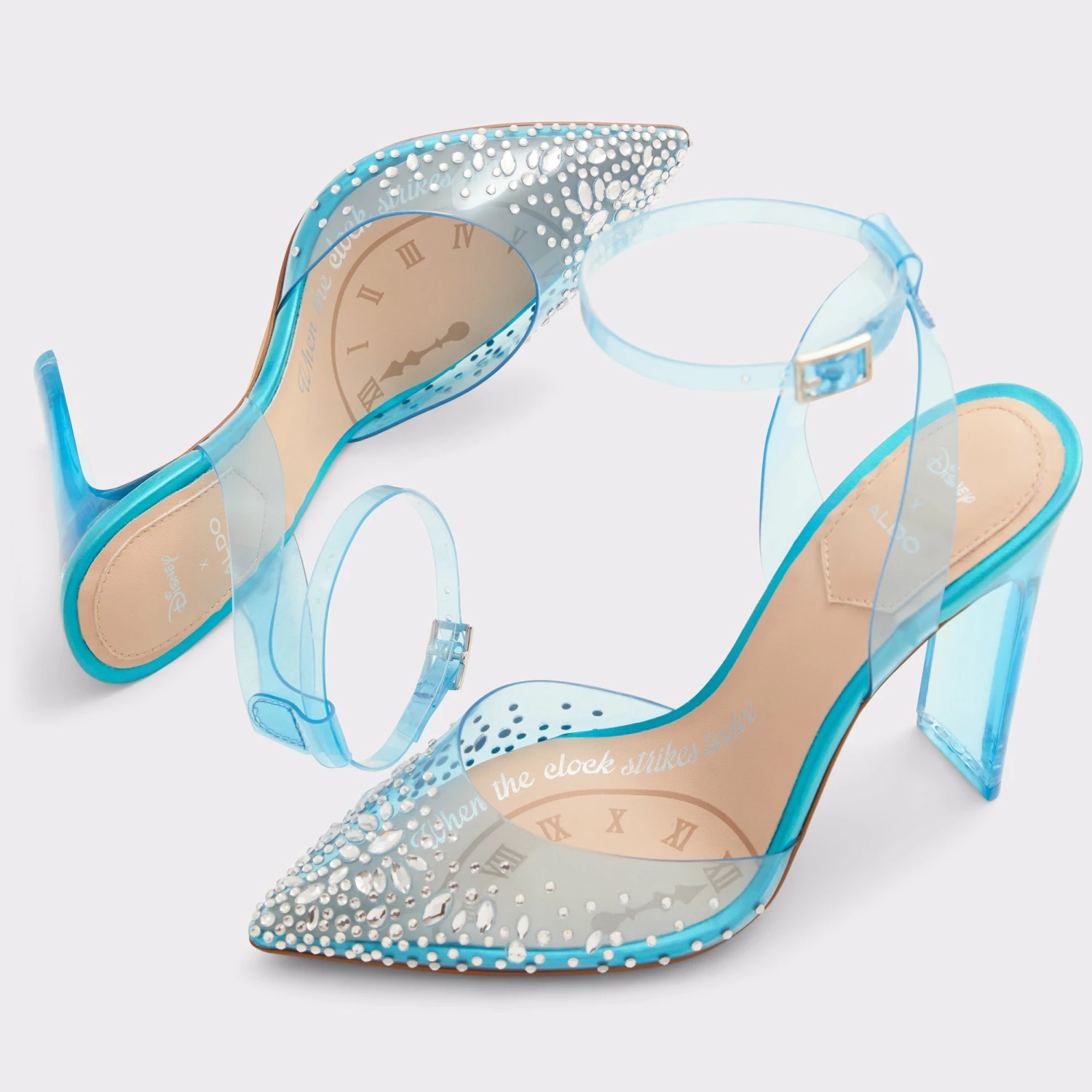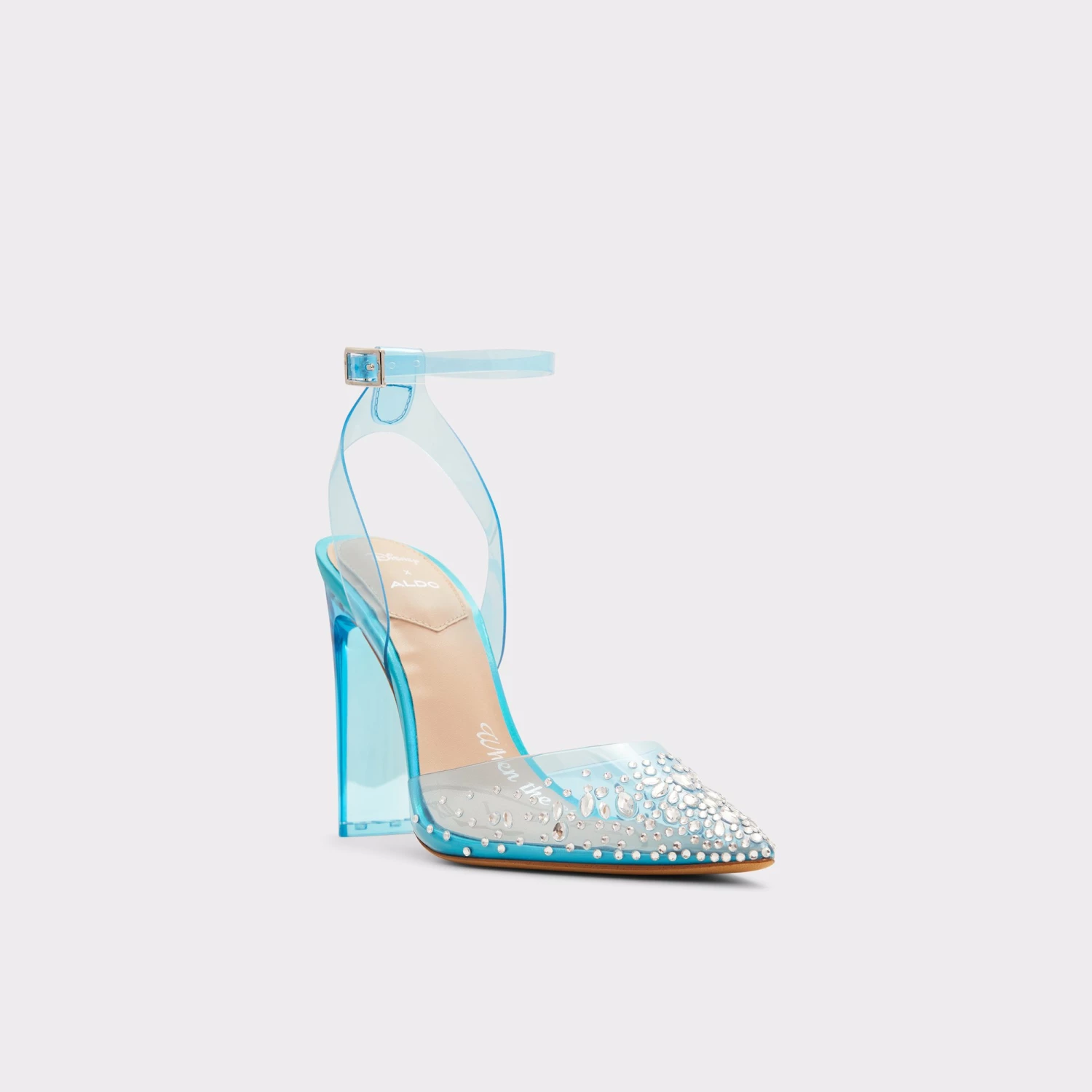 Prepare to step into your very own glass slippers. This fairy-tale inspired transparent pump will have you searching for a ball to attend. With a subtle iridescent finish, this Lucite heel ankle strap heel is the fabulous trend piece to flaunt this party season.