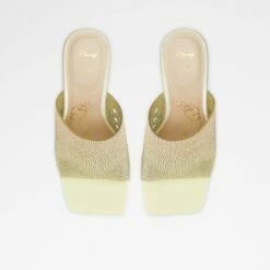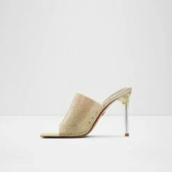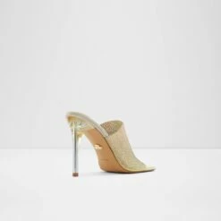 Slip into these standout high heel mules in a glittering gold ombre with a chic square toe, and walk with confidence into your own modern fairytale.