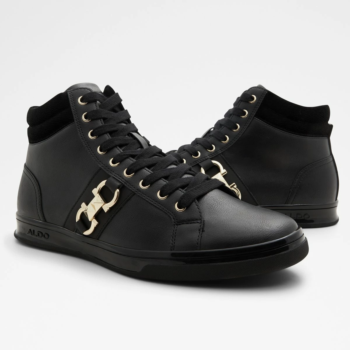 Add a touch of luxe to your looks with these sleek high tops designed with a standout metal ornament.