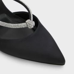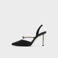 Add a dash of luxury to your looks with these striking sling back high heels adorned with rhinestone embellishments.