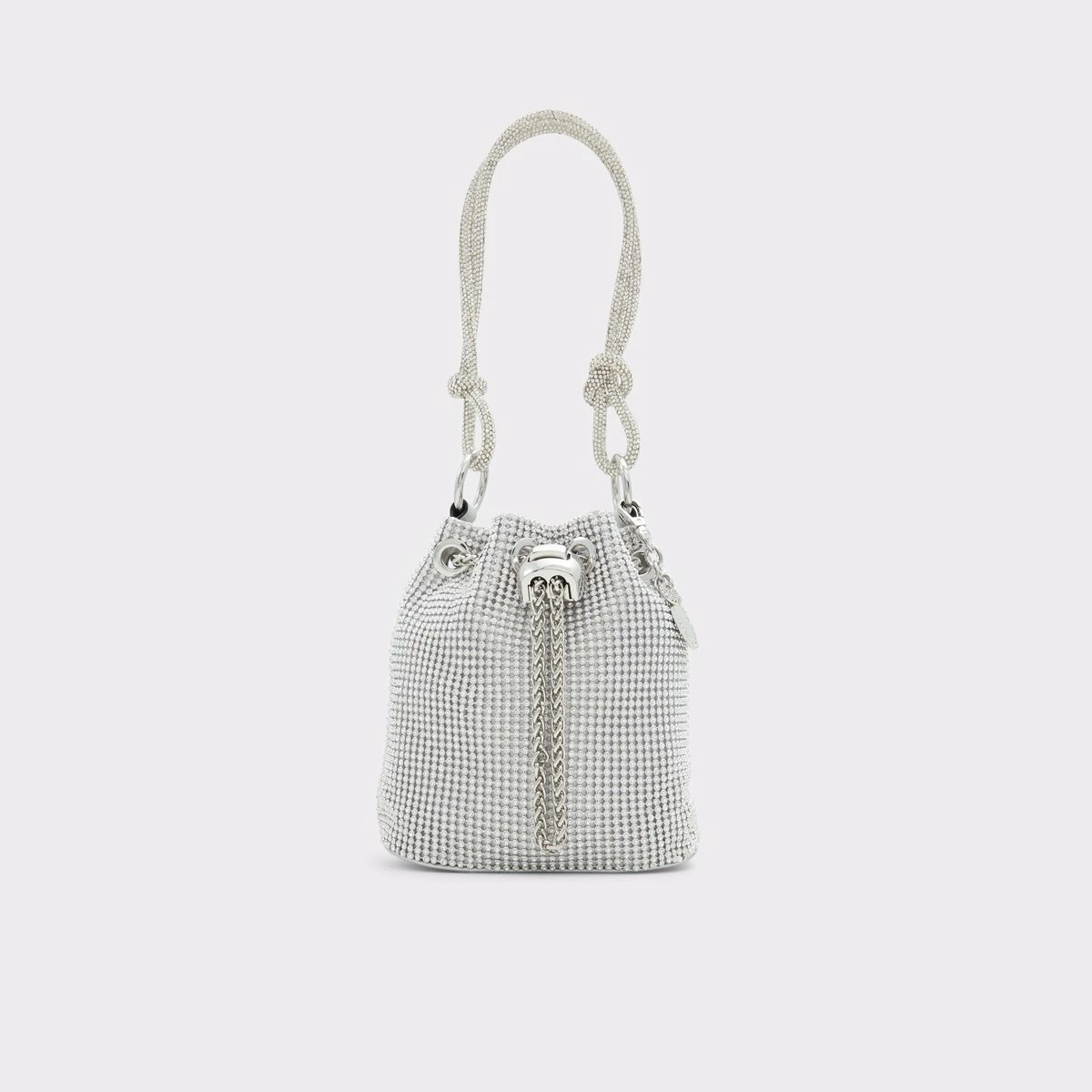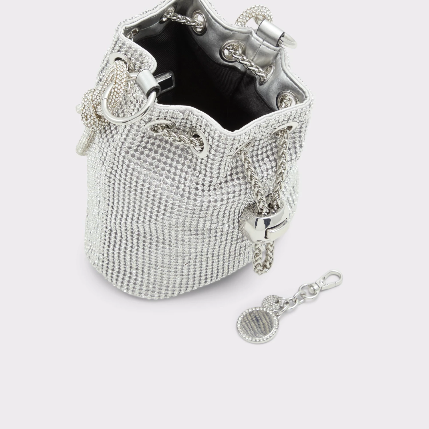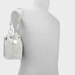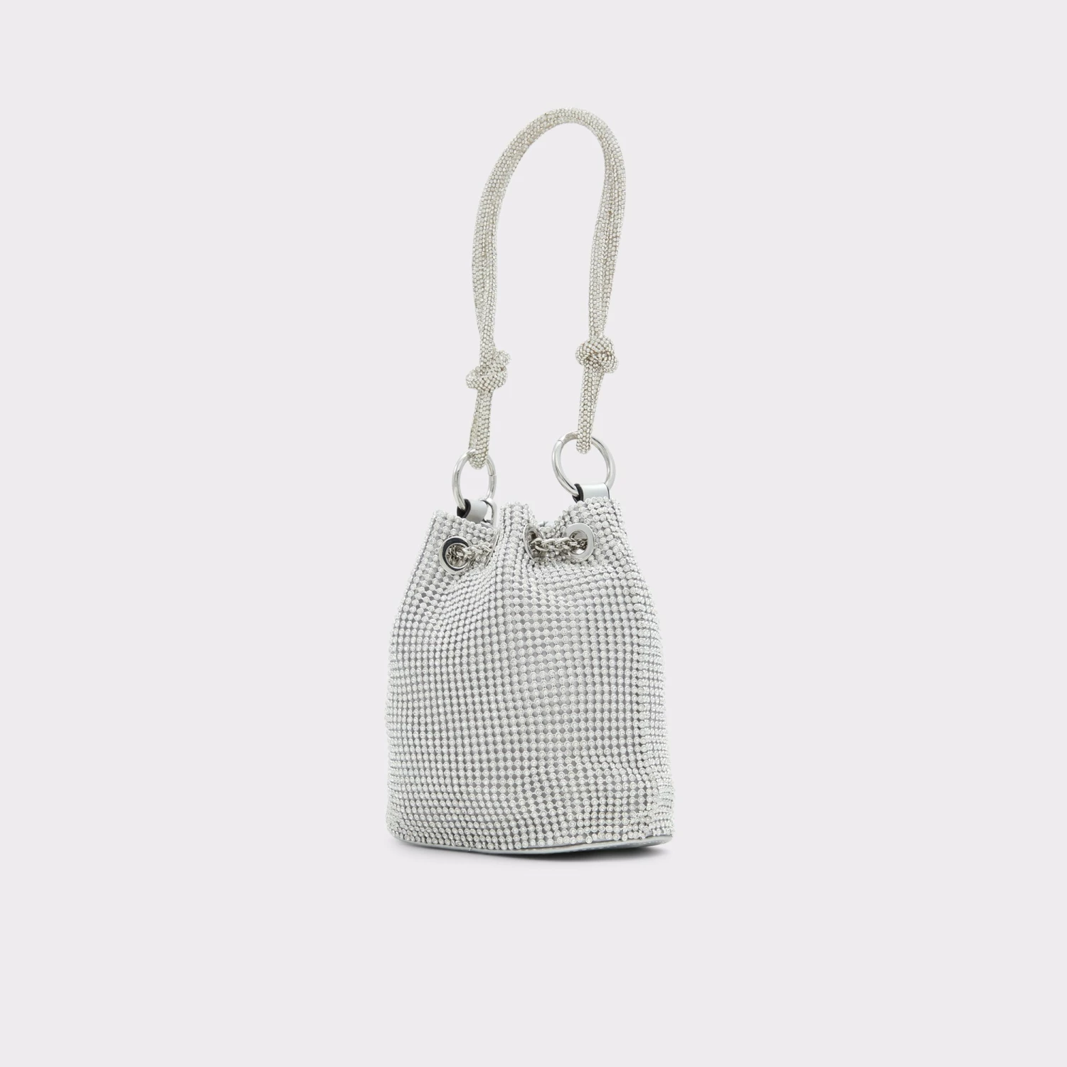 Marvel at this beautiful, rhinestone encrusted bucket bag designed to shine bright.