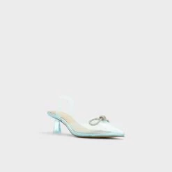 This style is an online exclusive. Delicate, dainty and oh so dreamy, these clear beauties with a decorative bow are the perfect-height heels for all your special occasions, big or small.