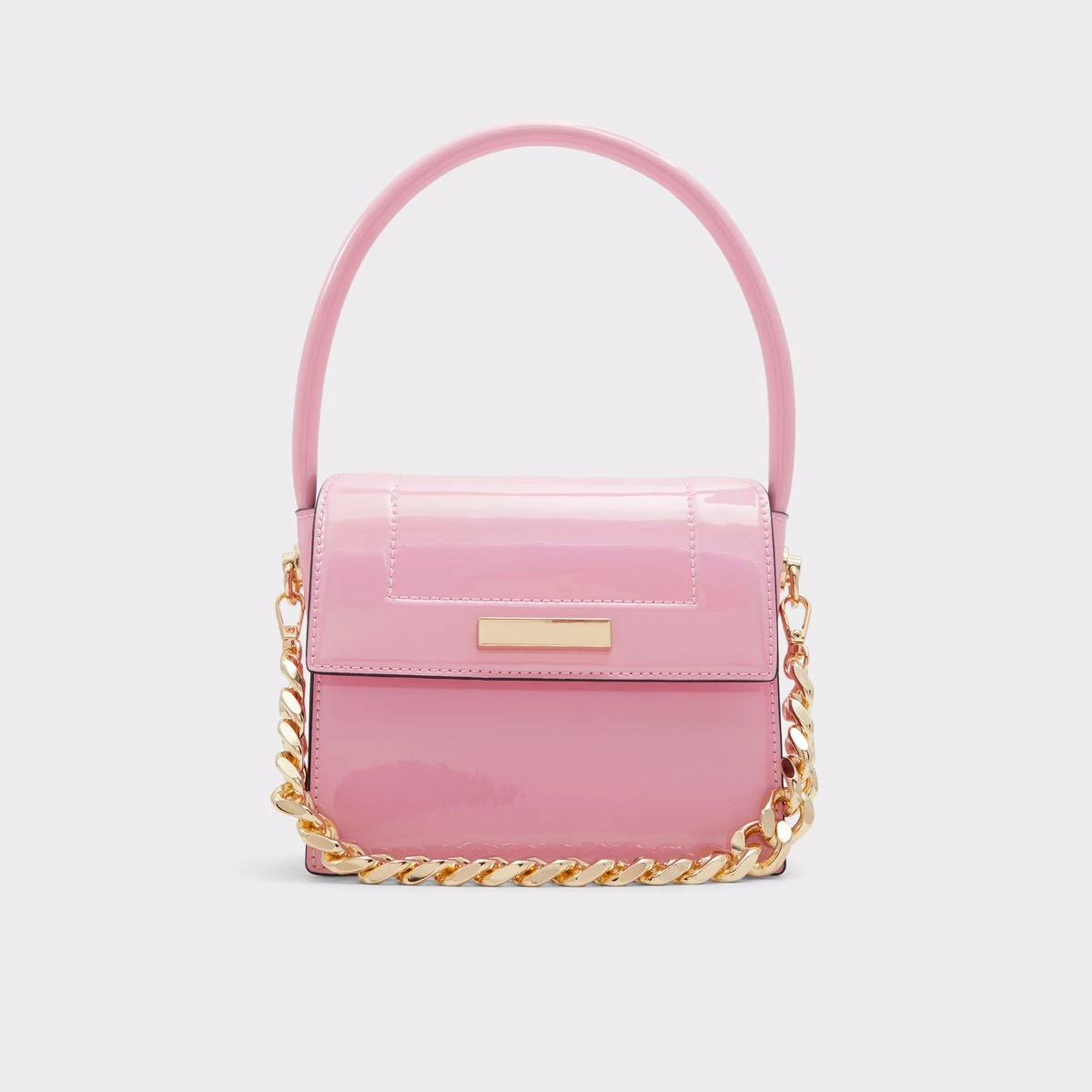 Make a daring statement with this standout handbag featuring an oversized top handle and chunky chain.